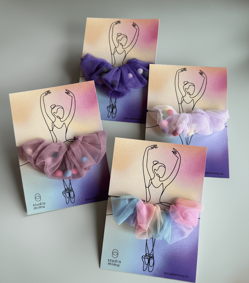 Ballerinakort med scrunchi i tyll. Fin gavepakke. Sydd av studio mimu.